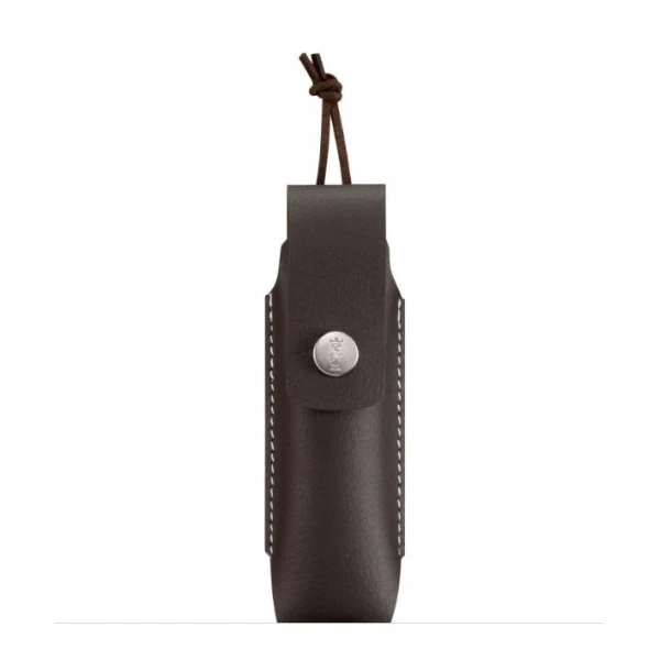 >>> Livré dans un coffret (plumier) en bois de hêtre avec plexiglas qui contient un couteau opinel véritable avec un manche en olivier massif et d’un étui Opinel Alpine en cuir synthétique marron foncé avec coutures coloris blanc, bouton pression pour la fermeture et petite cordelette en cuir (passant ceinture port horizontal).