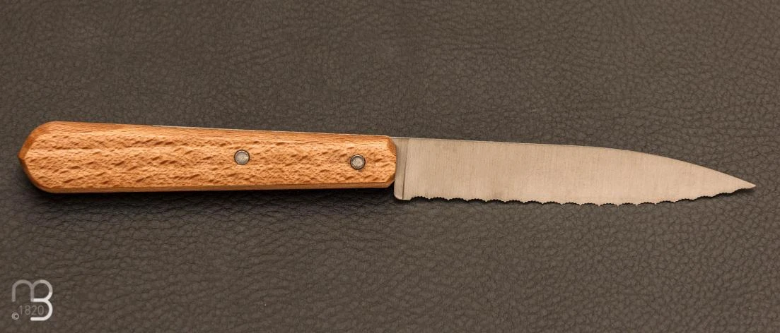 Sa lame en acier inoxydable Sandvik et son manche verni en hêtre permet le passage au lave-vaisselle.
