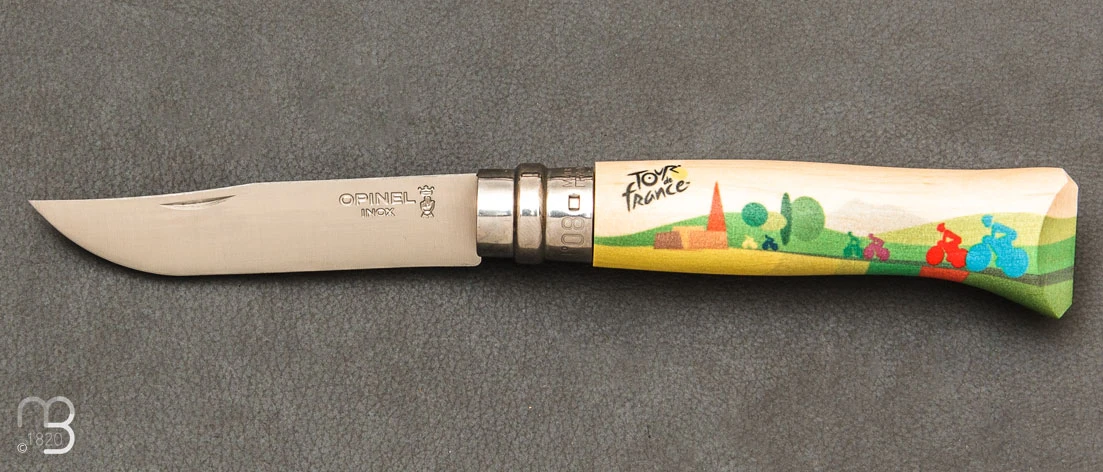 Pour célébrer l’édition du Tour de France 2020, Opinel a réalisé une édition limitée de son numéro 8 tradition avec un manche en charme sublimé, mais également un couteau Opinel N°08 avec un manche en hêtre gravé spécial tour de France également.