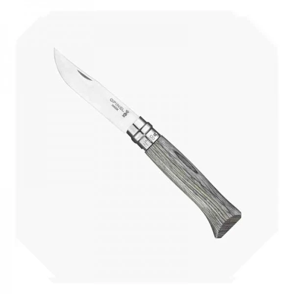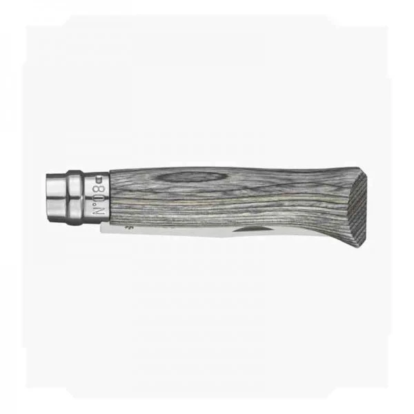 L’Opinel n°8 luxe avec son manche en bouleau lamellé gris est vendu en boite cadeau Opinel