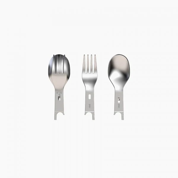 Le système est simple et pratique, Il suffit de fixer la fourchette ou la cuillère dans le petit interstice au dessus de la virole (lame fermée) de votre Opinel numéro 8 et de tourner celle-ci