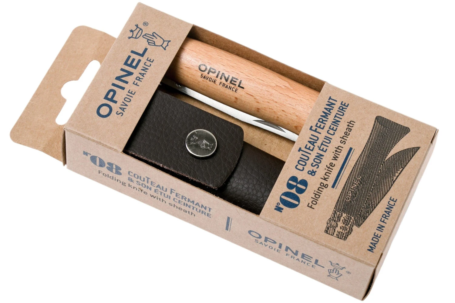 Le couteau de poche Opinel No. 8 avec étui en cuir de la gamme Tradition fait 19,0 cm de long pour 47 grammes. Parfait pour la randonnée, les pique-niques, le barbecue, la chasse ou la pêche. Un couteau de poche parfait pour faire ce que vous voulez, quand vous voulez et où vous voulez !