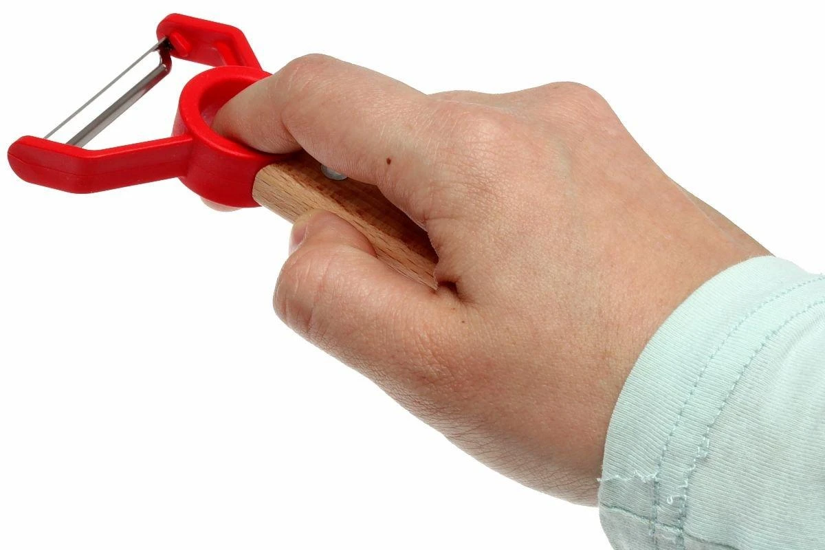 Opinel a lancé sur le marché « Le petit chef », une ligne spécialement développée pour les enfants. Avec l’éplucheur de cette ligne, les enfants peuvent participer en toute sécurité aux tâches culinaires. Ce design avec un anneau permet de placer spontanément ses doigts au bon endroit pour peler facilement. La lame est évidemment aiguisée, une surveillance reste donc nécessaire.