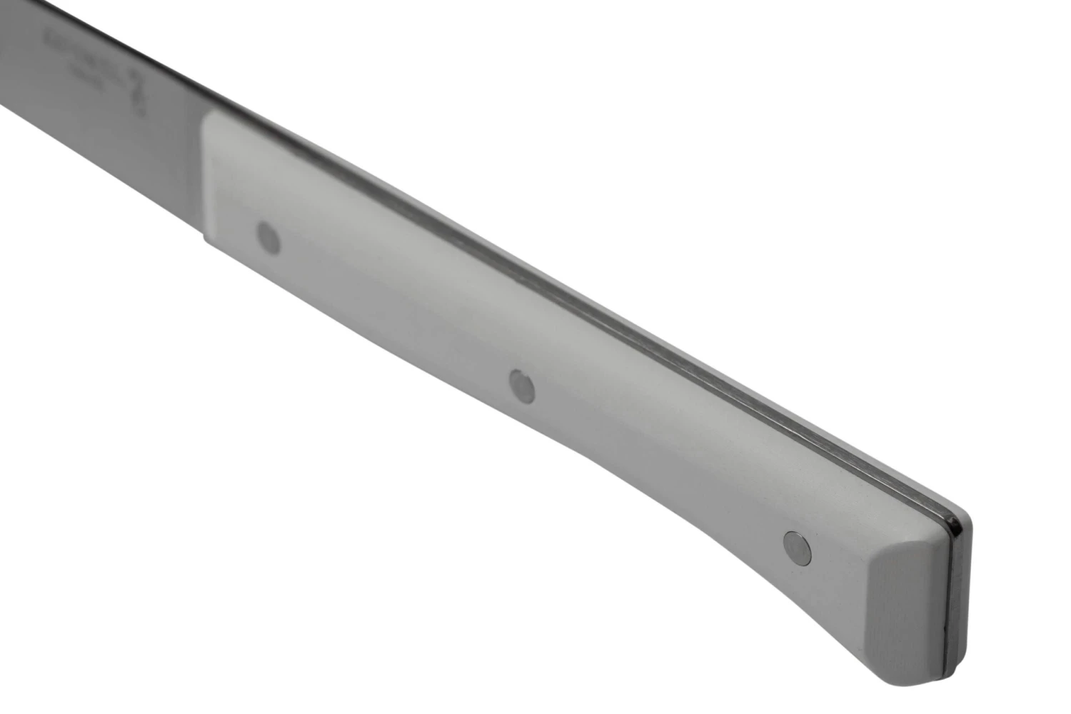 L’Opinel facette est une collection de couteaux fabriquĂ©e en France. Les modĂšles de cette collection sont disponibles dans diffĂ©rents coloris. L’Opinel facette white box se compose de quatre couteaux de table avec une lame en acier inoxydable en pleine soie et un manche fait en papier pressĂ©.